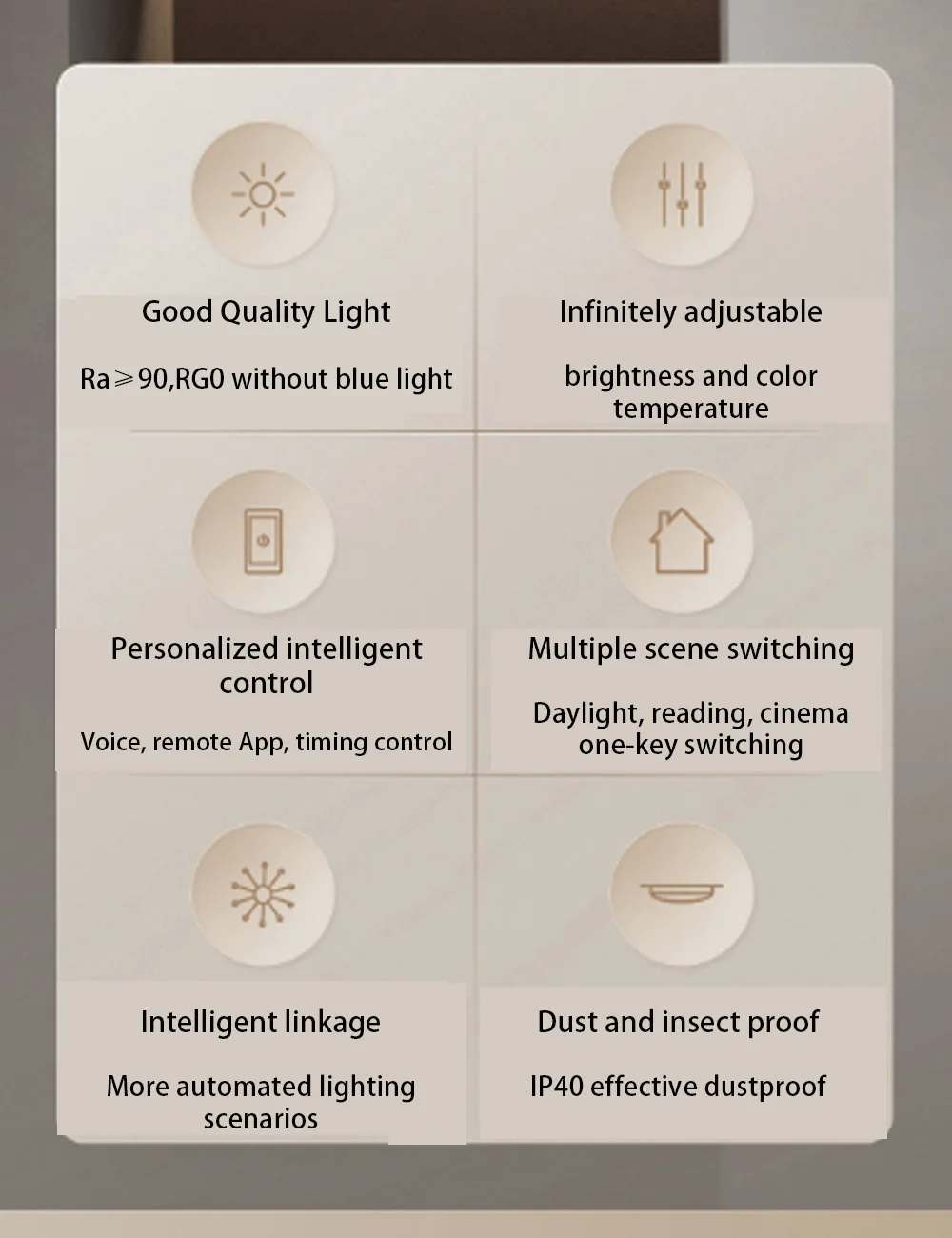 Intelligent control functions: color temperature adjustment, brightness adjustment, scene switching
