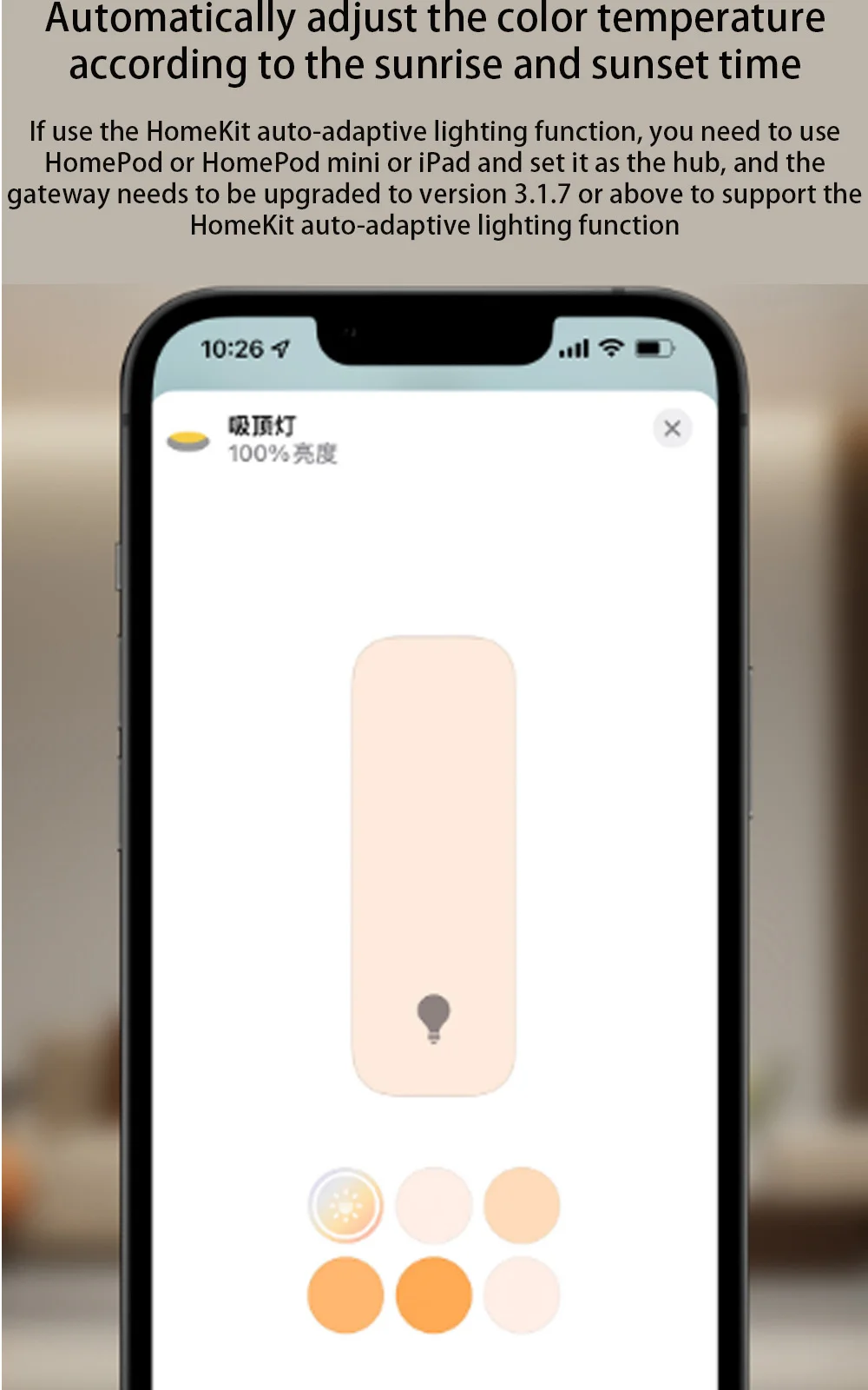 Function: LED light with infinitely adjustable brightness and color temperature, can be connected to Apple HomeKit, and a gateway is required to realize APP linkage