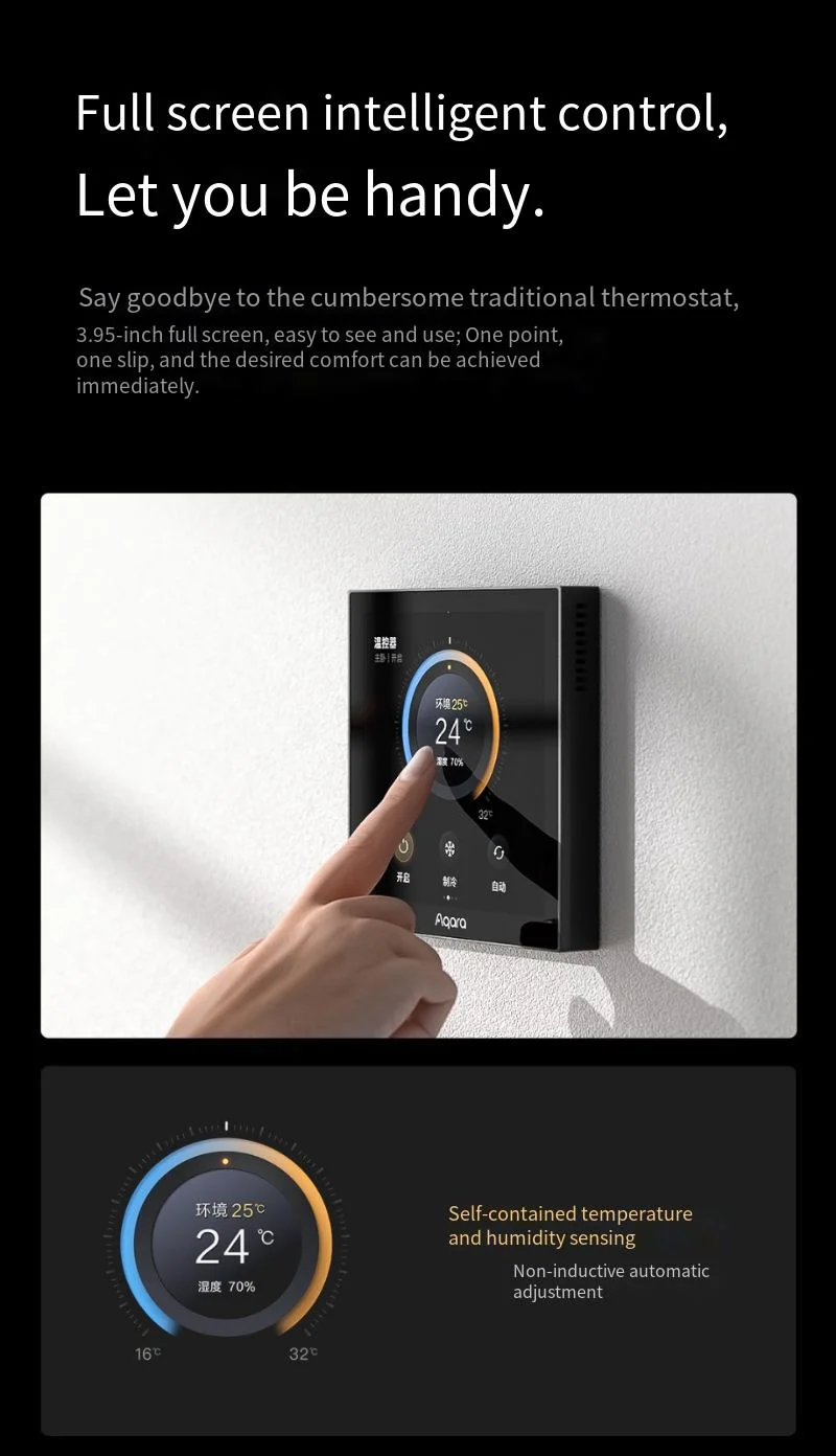 Aqara smart thermostat S3 Air conditioner temperature control LCD fan coil switch controller Panel Voice Control for Aqara App