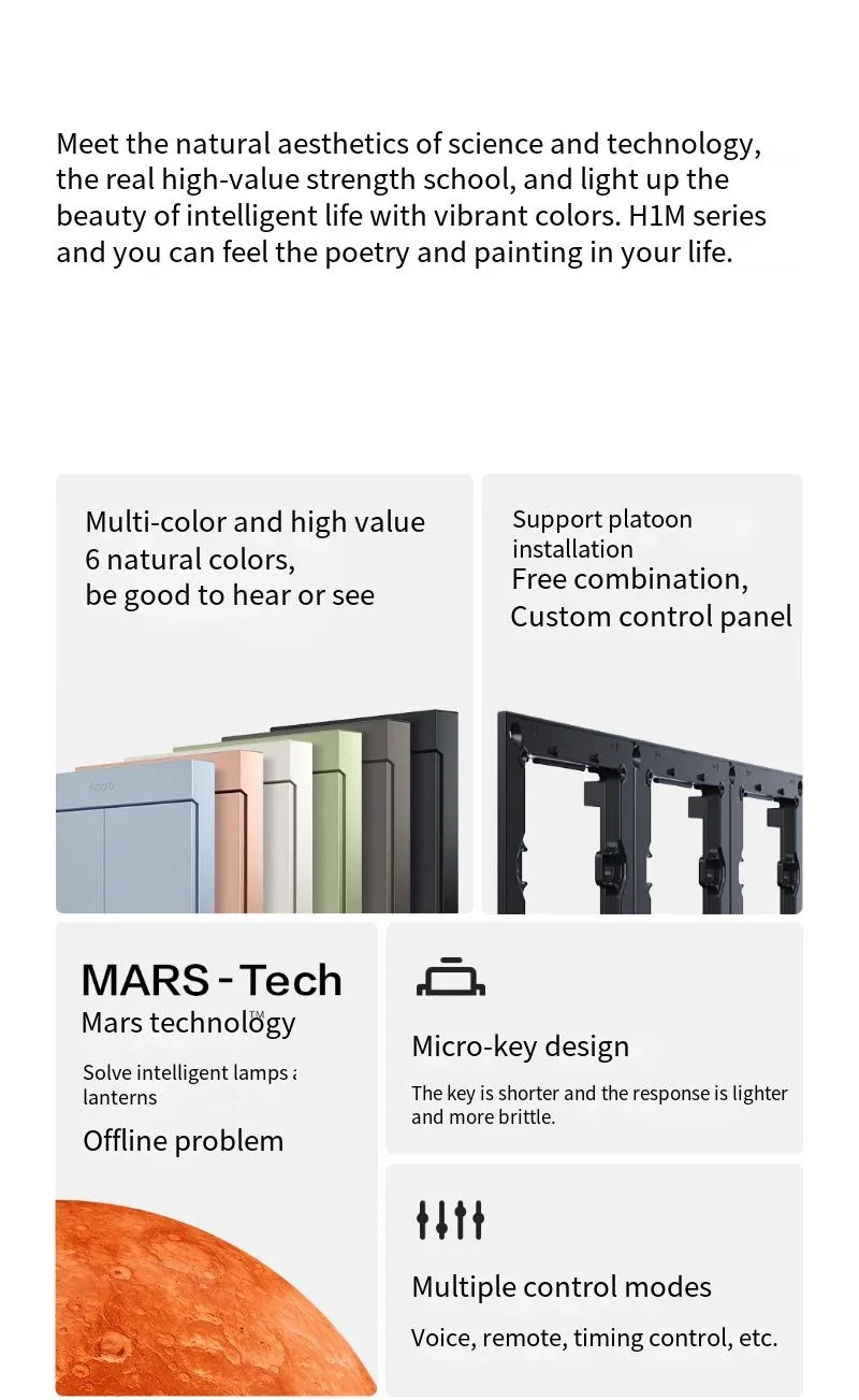 1. H1M switch can work with Aqara Home APP and Apple HomeKit, it doesn't work with Mi Home APP.