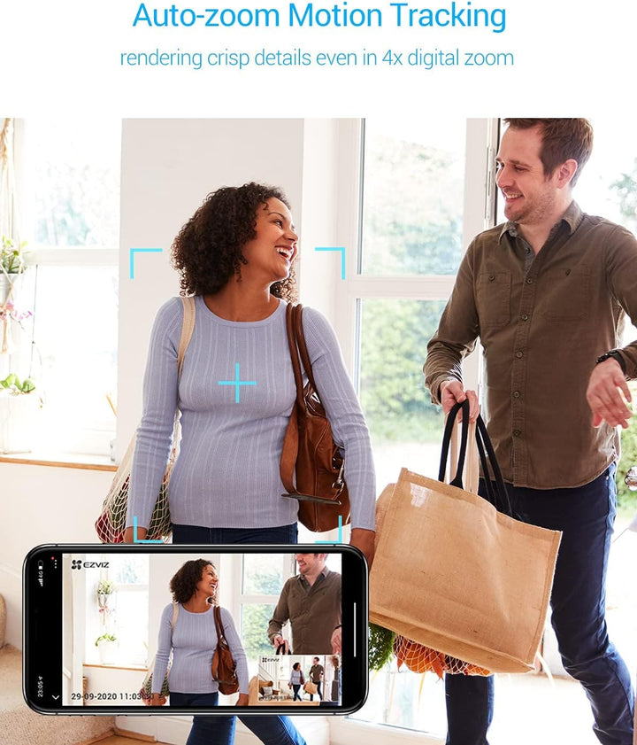EZVIZ 4MP Indoor Camera PTZ with AI Human Detection, 2K Pan Tilt Security, Baby/Pet Monitor, Night Vision, 4X Auto-Zoom, Motion Tracking | C6W