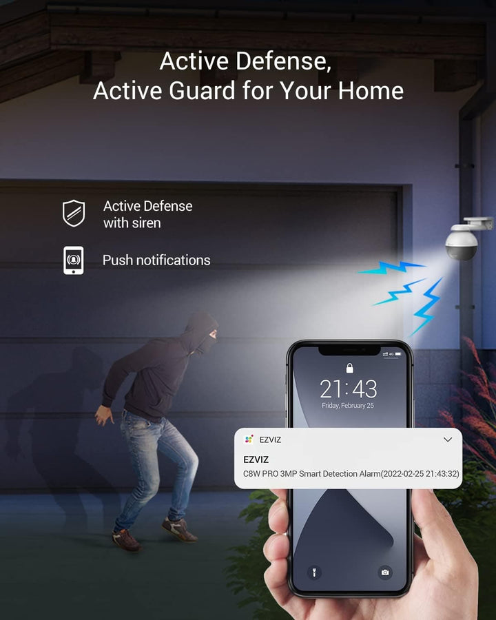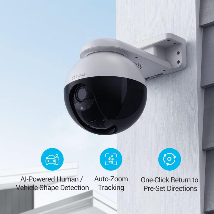 EZVIZ Outdoor Auto-Tracking Camera, 3K, 12 Pre-Set dots Tracking,360° Visual Coverage, Waterproof, Color Night Vision, AI-Powered Person and Vehicle Detection,Two-Way Talk| C8W Pro 3K (6mm)