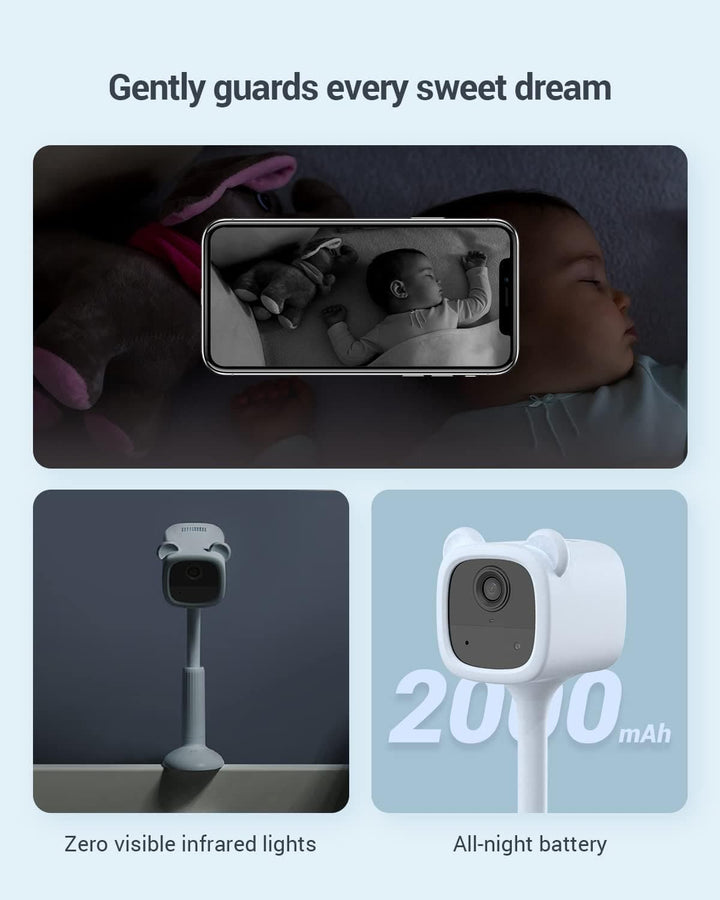 EZVIZ Wireless Battery-Powered Video Baby Monitor, Crying Detection, Baby Activity Detection, Out-of-Crib Alert, 1080P, IR Night Vision, Wire-Free Setup, Two-Way Talk, SD Card/Cloud Storage-BM1